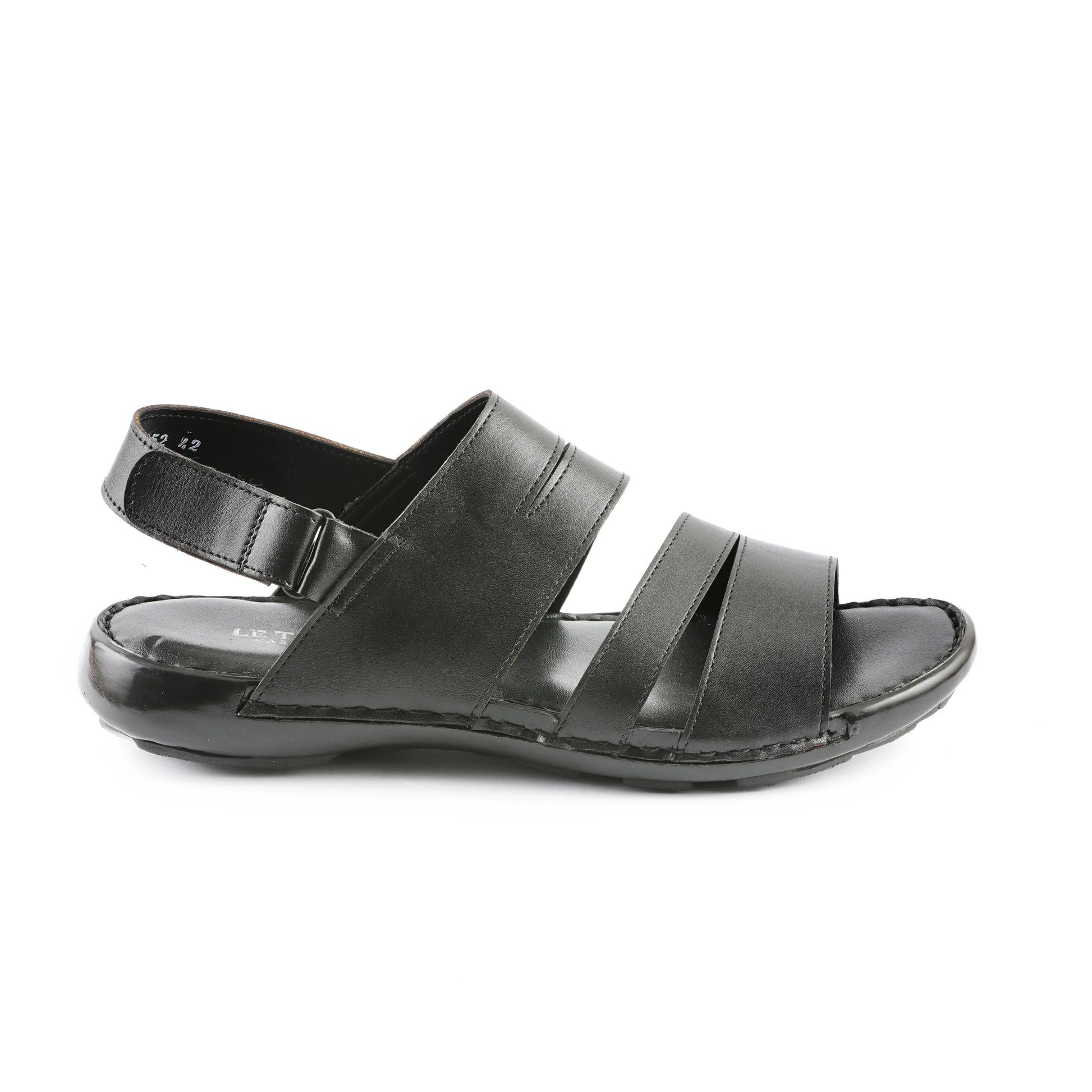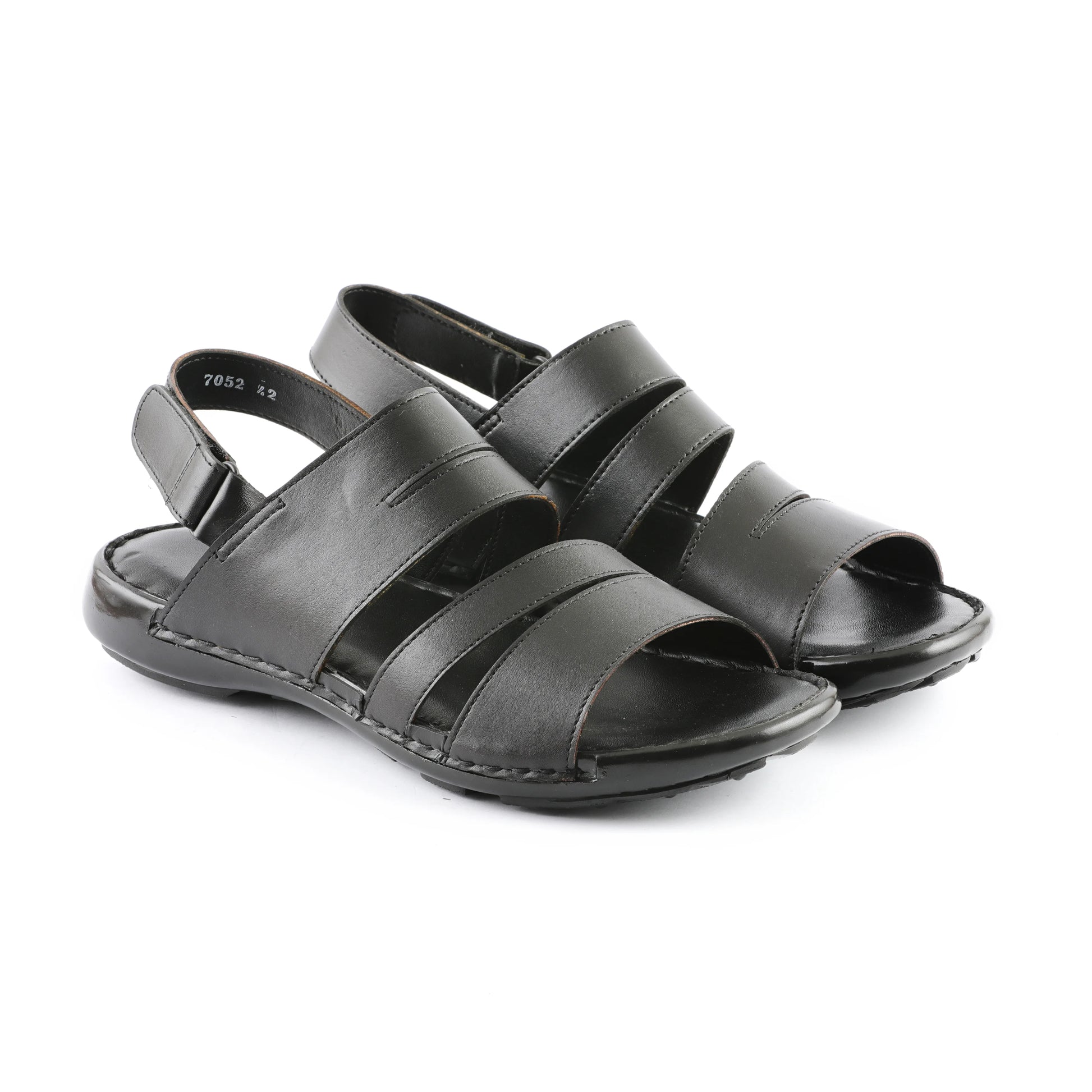 - Characterized by their smooth black leather material, breathable strap design, and meticulous stitching that underscores their handmade nature.