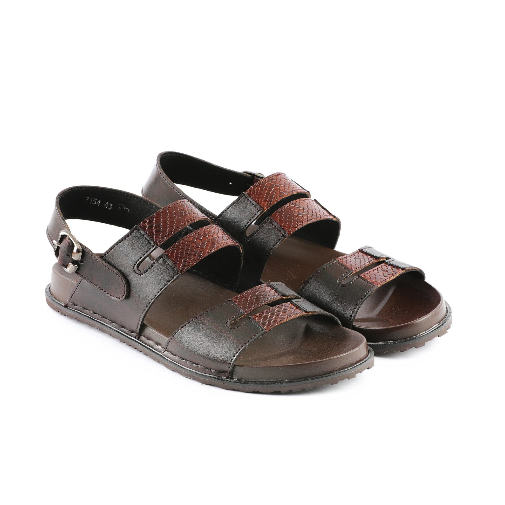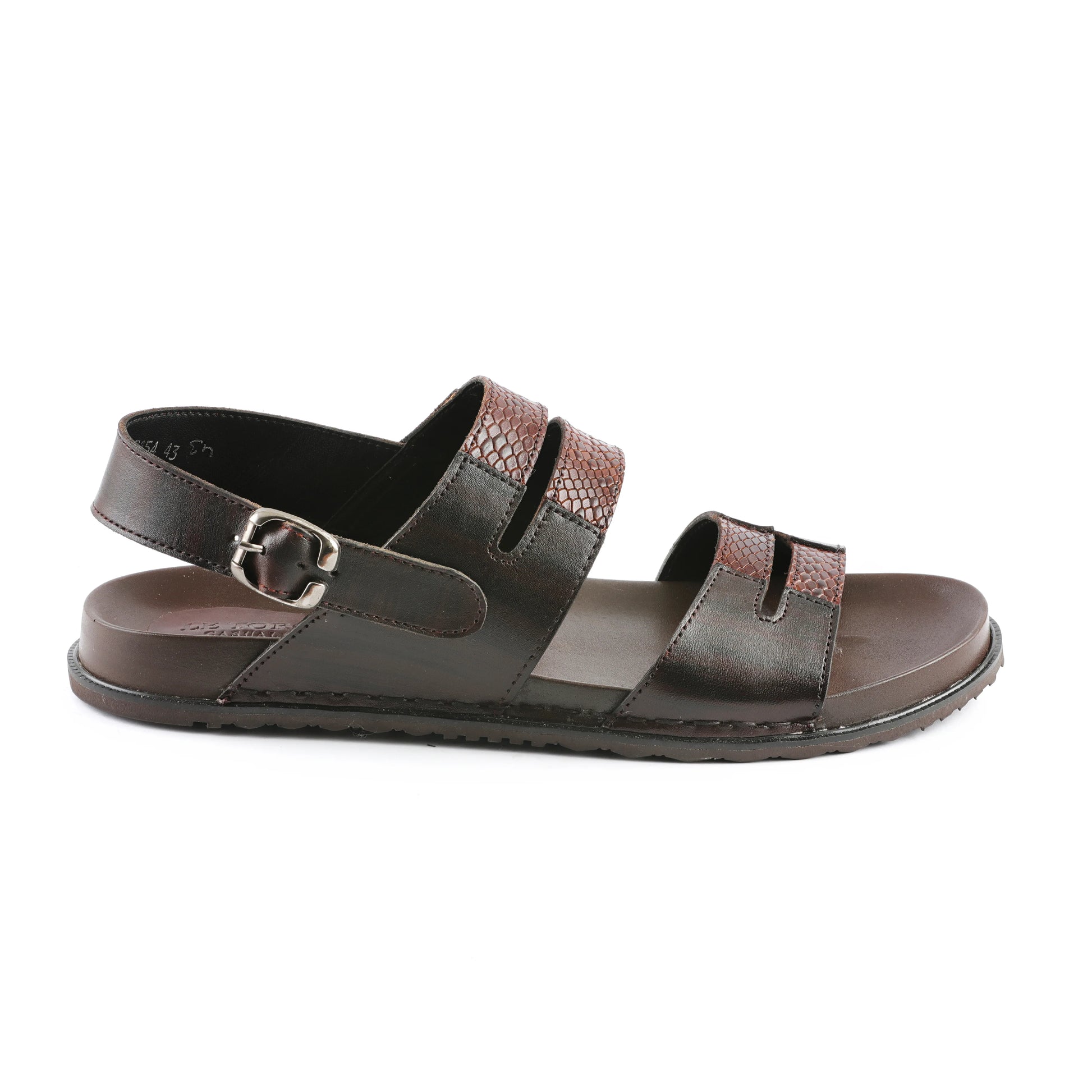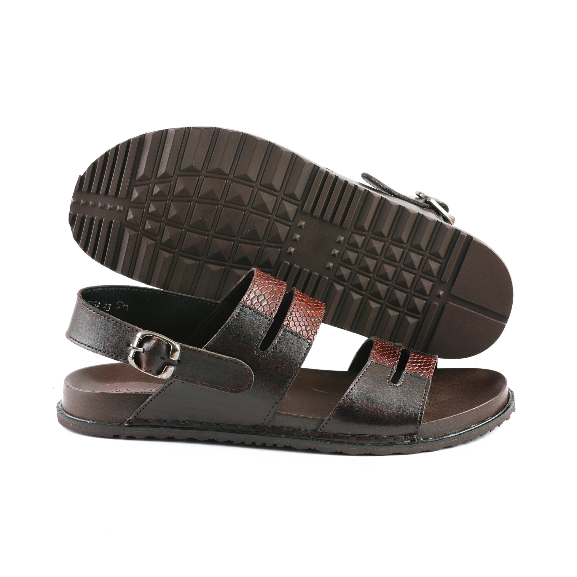 - Crafted from high-quality leather, these sandals showcase a rich and elegant texture. The leather appears supple and well-treated.