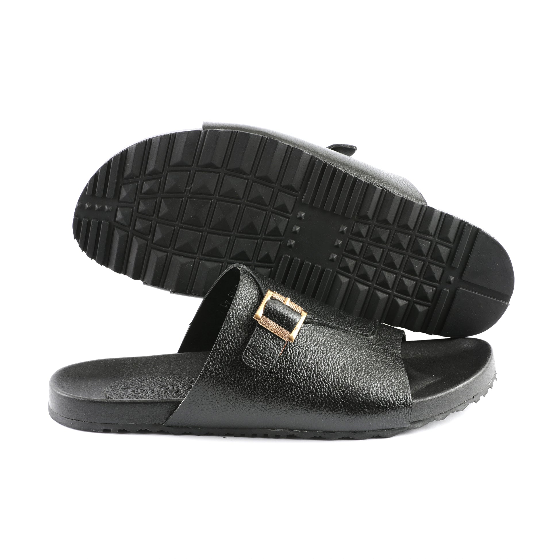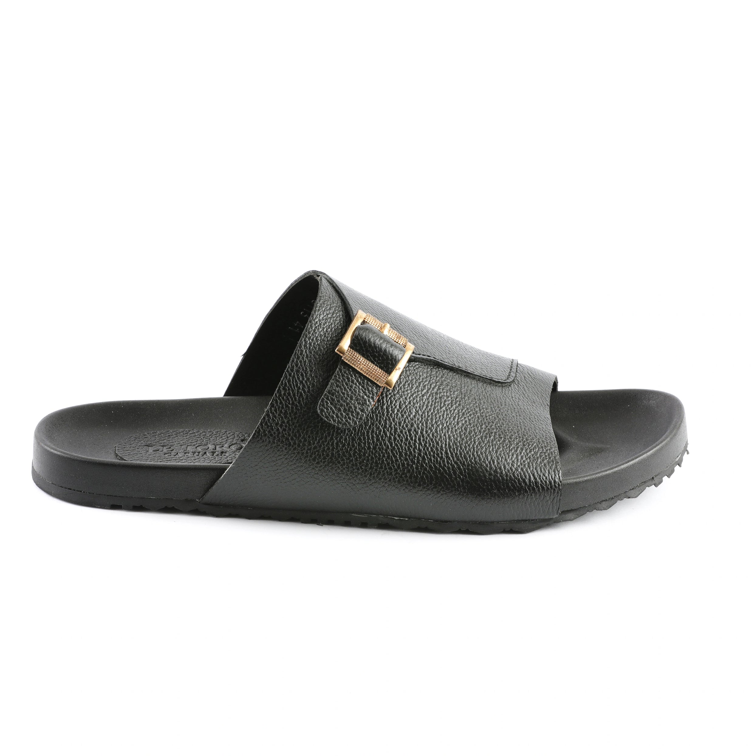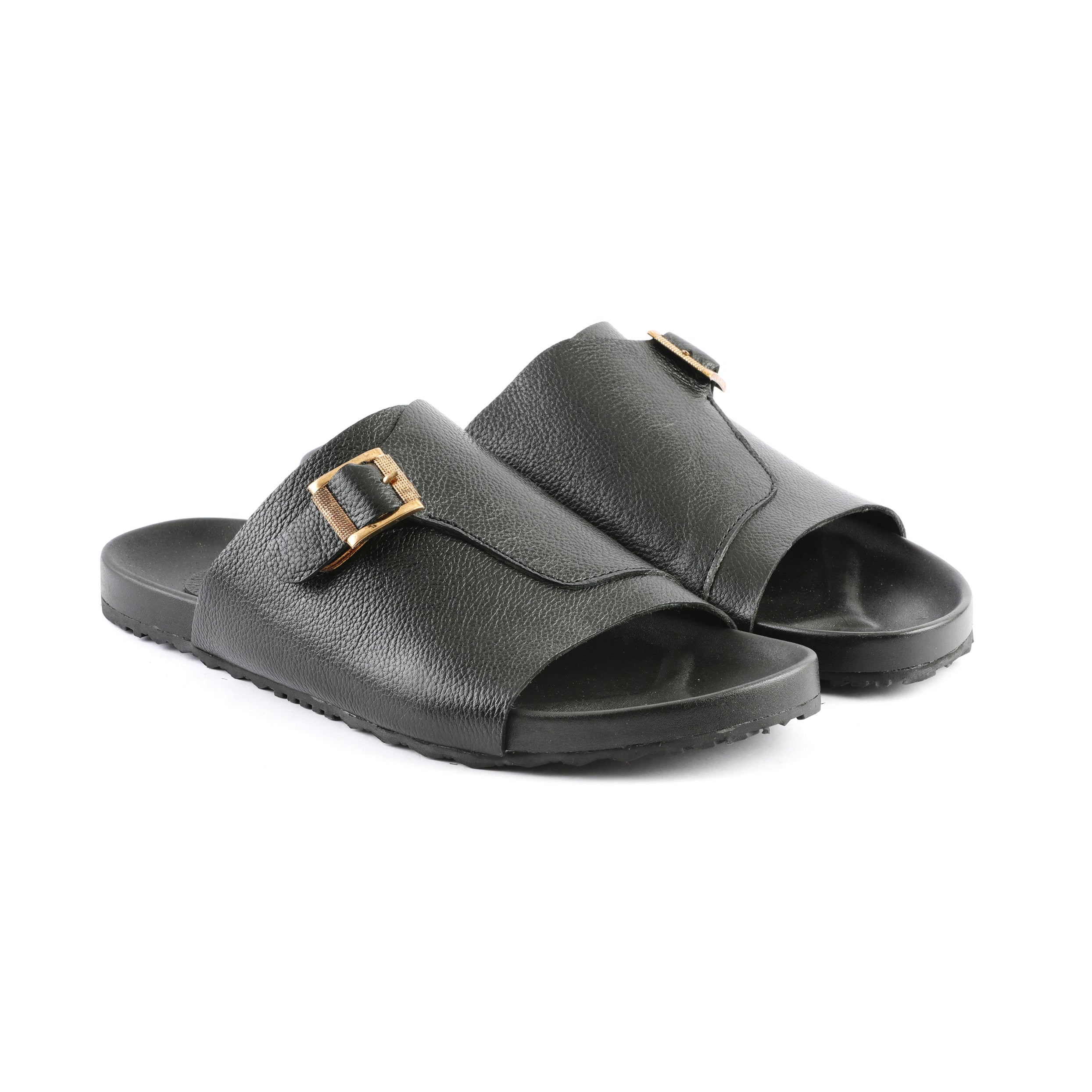- Crafted from high-quality black leather, these slippers exude luxury.