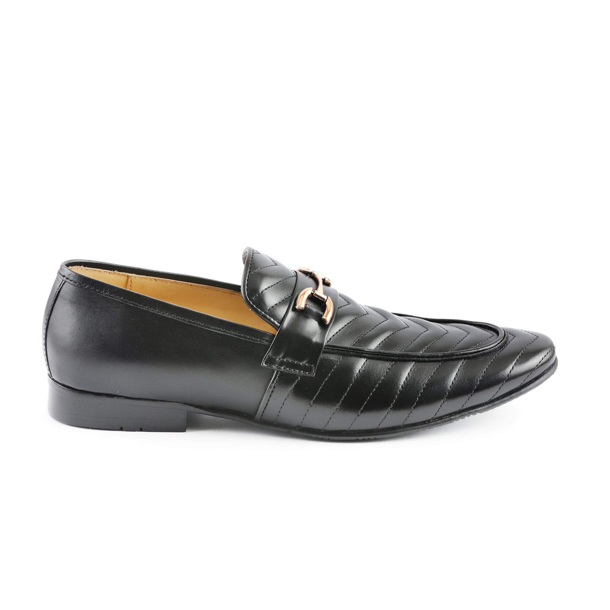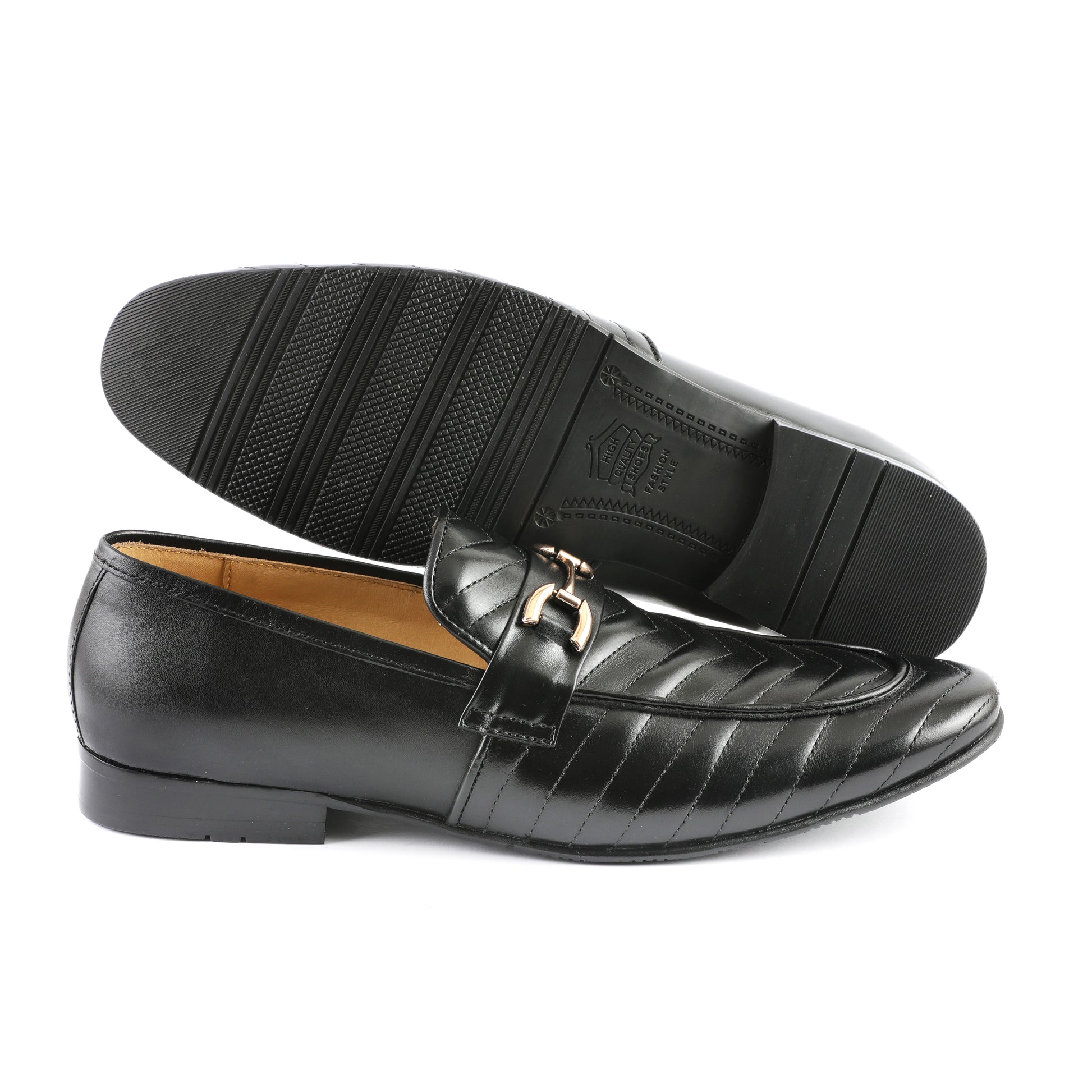 - The shoes are made from high-quality black leather. The leather has a smooth and glossy finish, reflecting light subtly.
