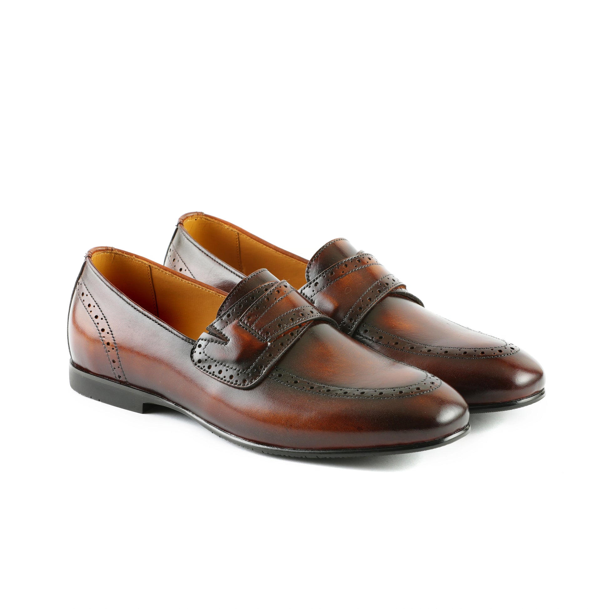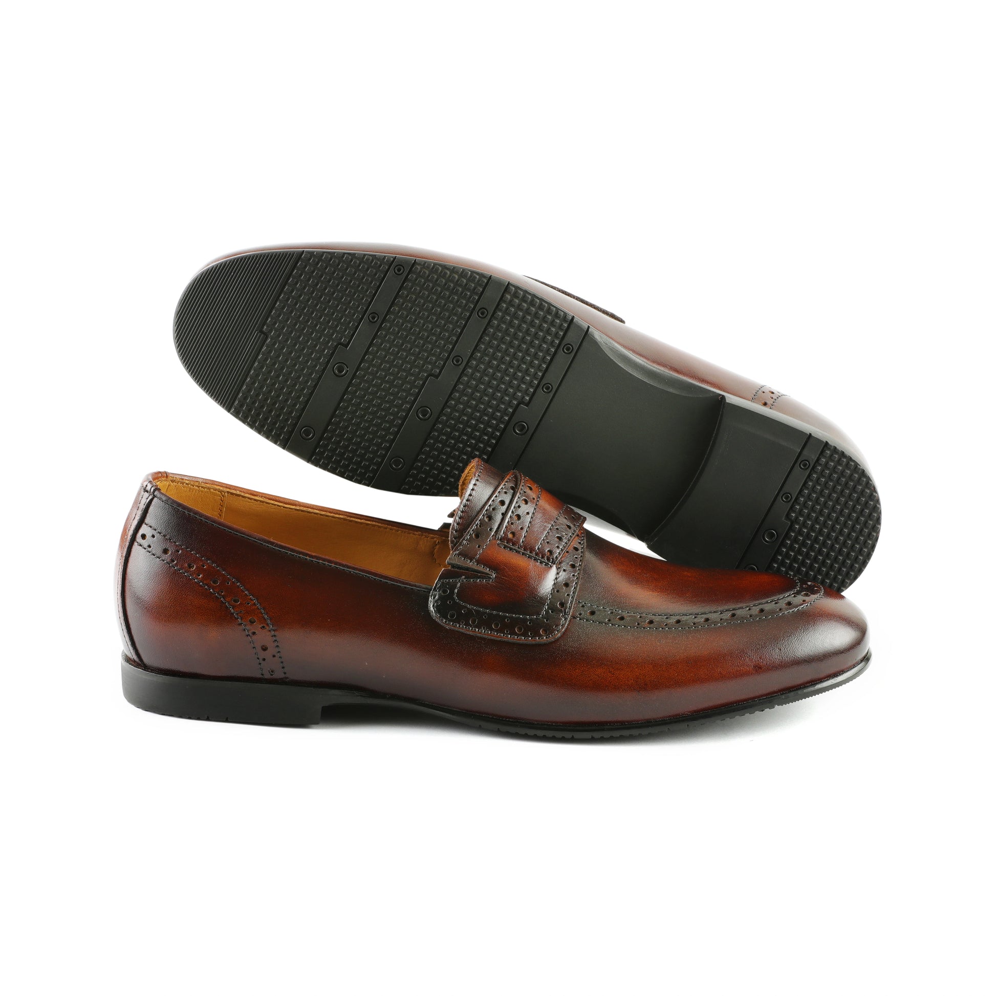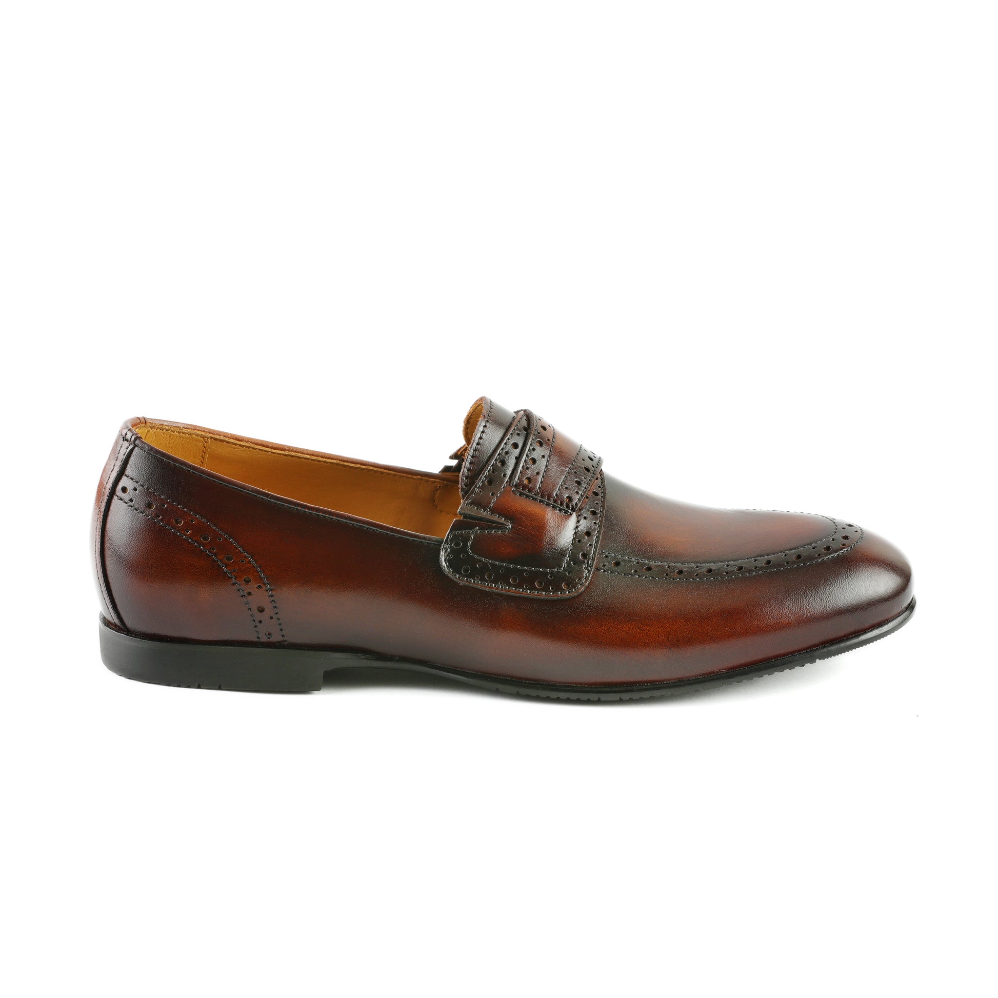 Elevate your style with these premium leather loafers, crafted to add a touch of sophistication to any wardrobe. Featuring a rich brown hue with a sleek, polished finish, these shoes are perfect for formal occasions. The detailed brogue patterning along the edges and across the strap gives them a classic yet modern flair. Built with a comfortable insole and durable outsole, these loafers provide both elegance and comfort. Ideal for pairing with suits, chinos, or jeans, these shoes make a versatile addition to any stylish man’s collection