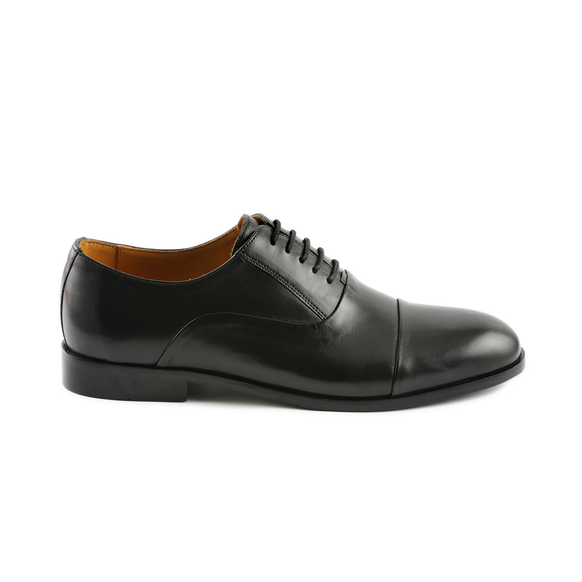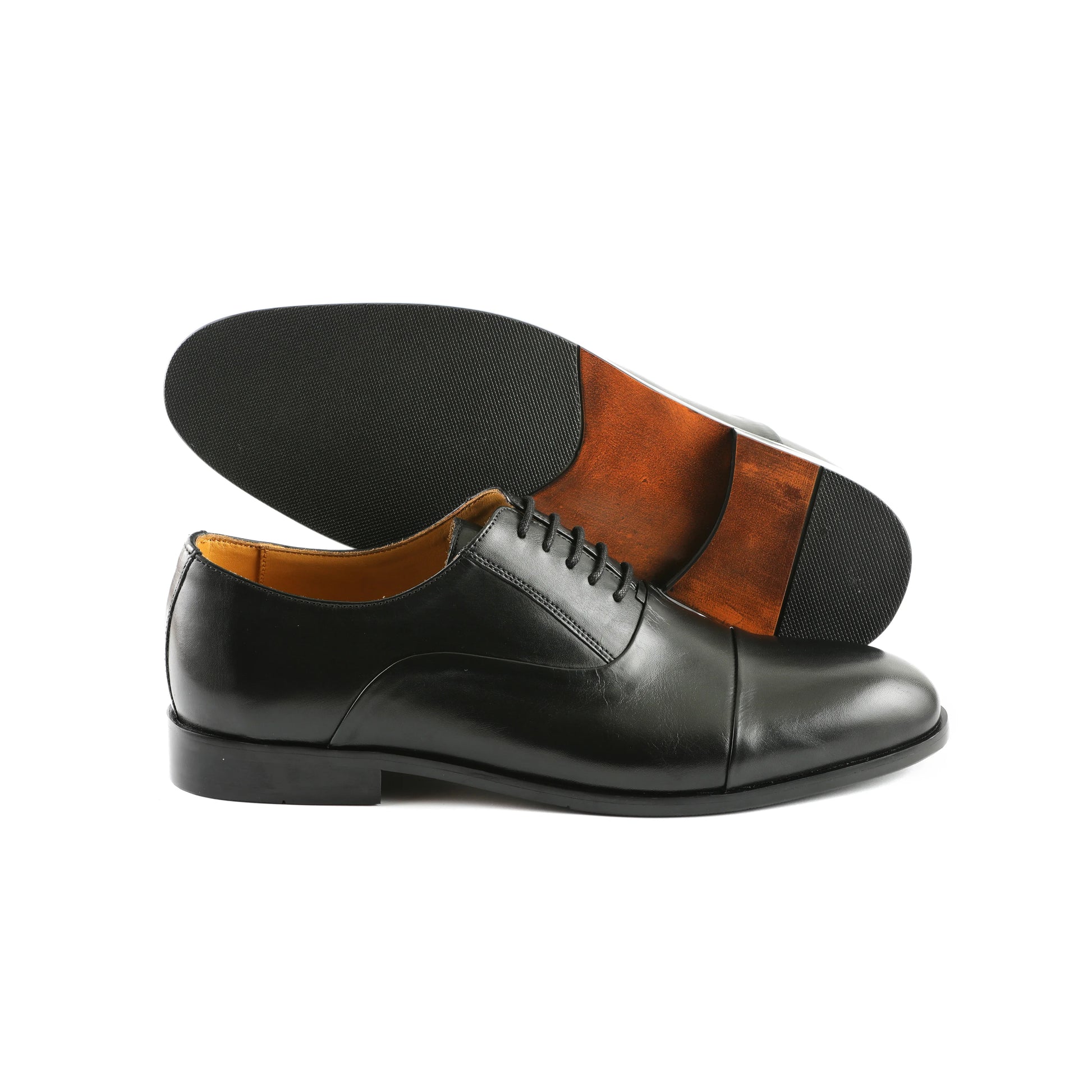 These elegant black leather Oxford shoes are perfect for formal and semi-formal occasions. Crafted from high-quality leather, they feature a sleek, smooth finish and a classic cap-toe design that adds a touch of sophistication. The closed lacing system enhances the traditional Oxford style, while the inner lining ensures comfort for extended wear. The durable sole provides excellent traction and support, making these shoes both stylish and practical. Ideal for pairing with suits, dress pants, or even smart casual attire, these black leather Oxfords are a timeless addition to any wardrobe.