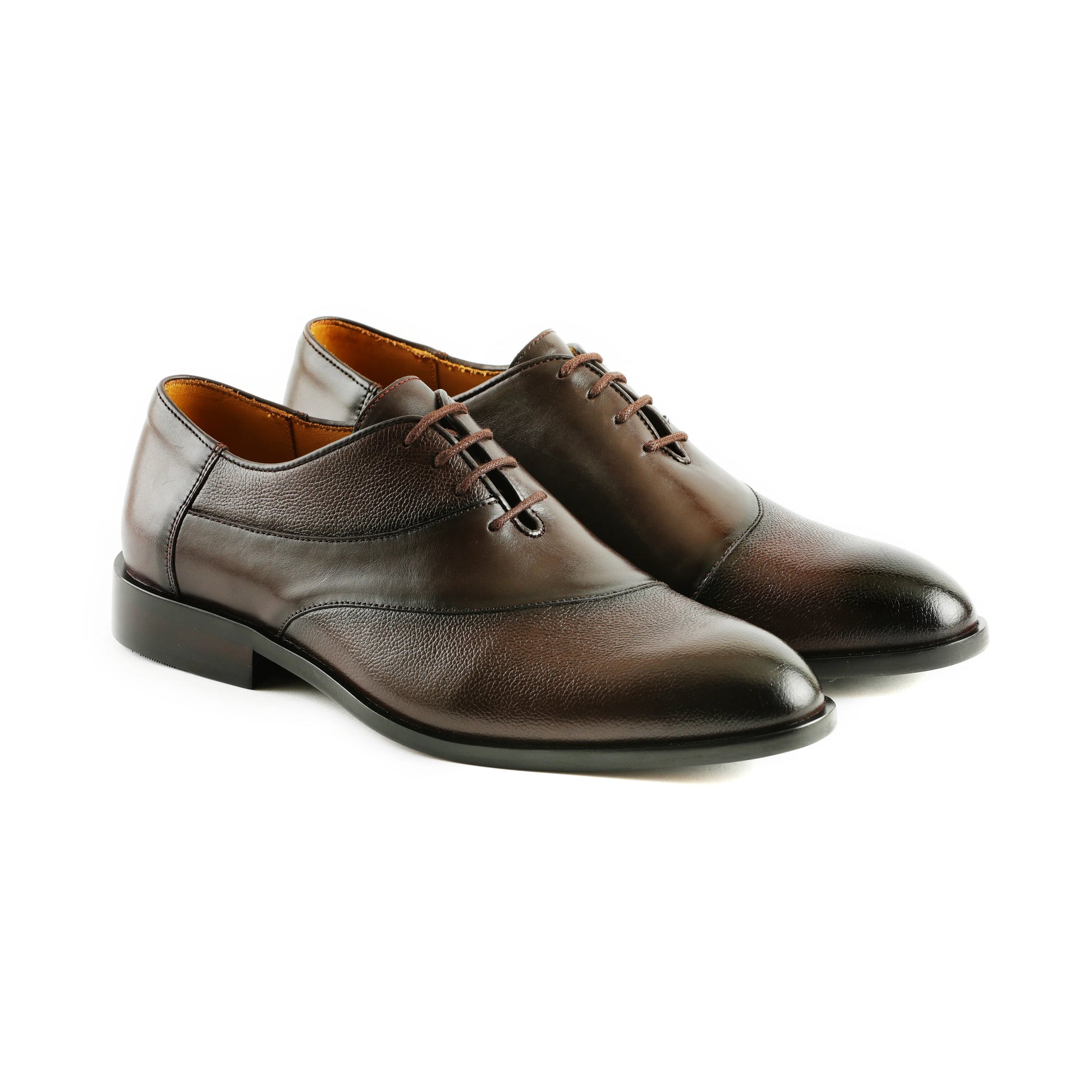Step into style with these elegant brown leather derby shoes, perfect for the modern man. These shoes feature a smooth and textured leather upper that adds a subtle contrast, making them ideal for both formal and business casual settings. The lace-up closure ensures a snug fit, while the cushioned insole and durable outsole offer comfort and long-lasting wear. Whether paired with a suit or smart-casual attire, these derby shoes elevate any outfit with timeless sophistication.