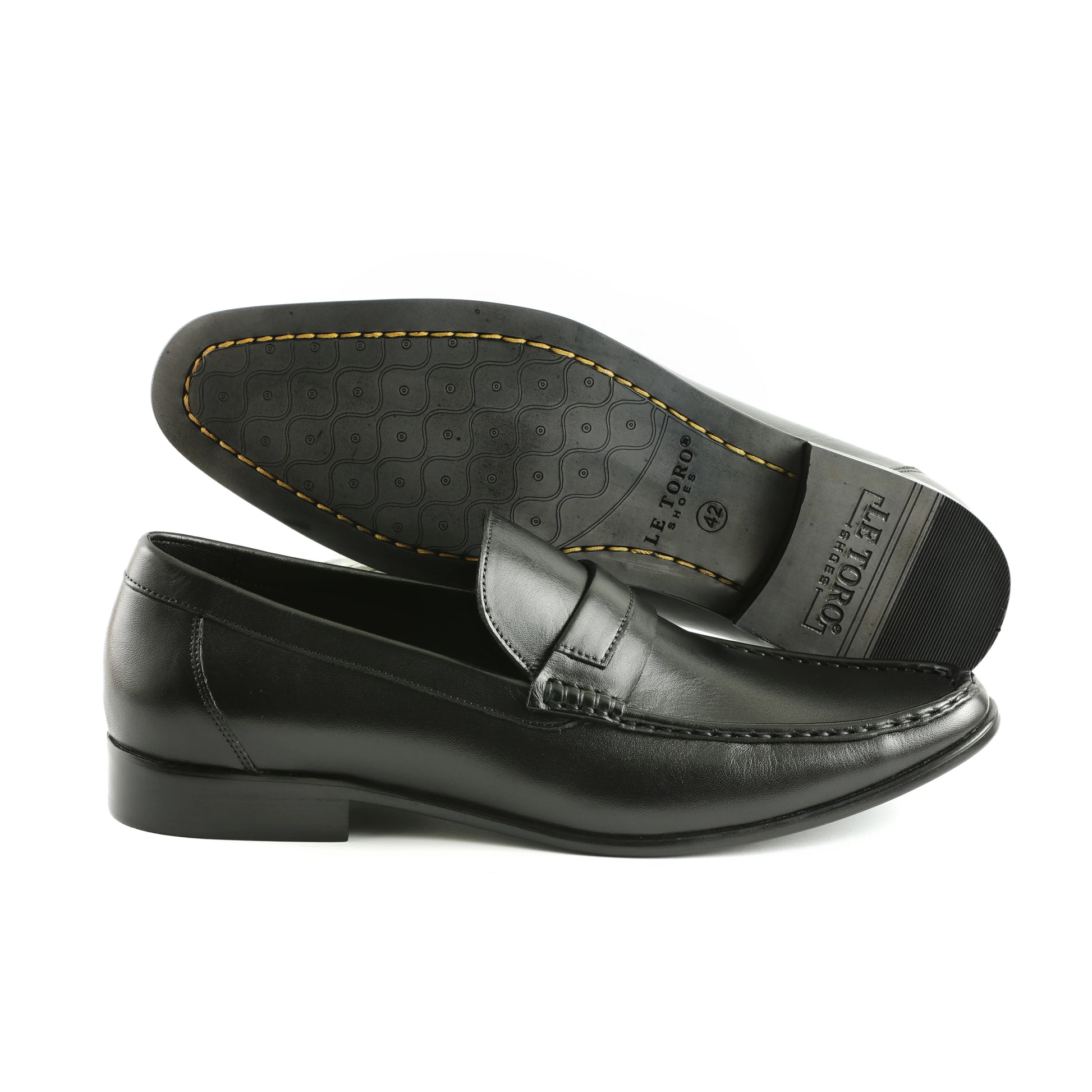 Elevate your style with these classic penny loafers, a timeless addition to any wardrobe. Crafted from premium leather, these shoes feature a sleek design with a penny slot detail. The slip-on style and comfortable fit make them perfect for casual occasion.