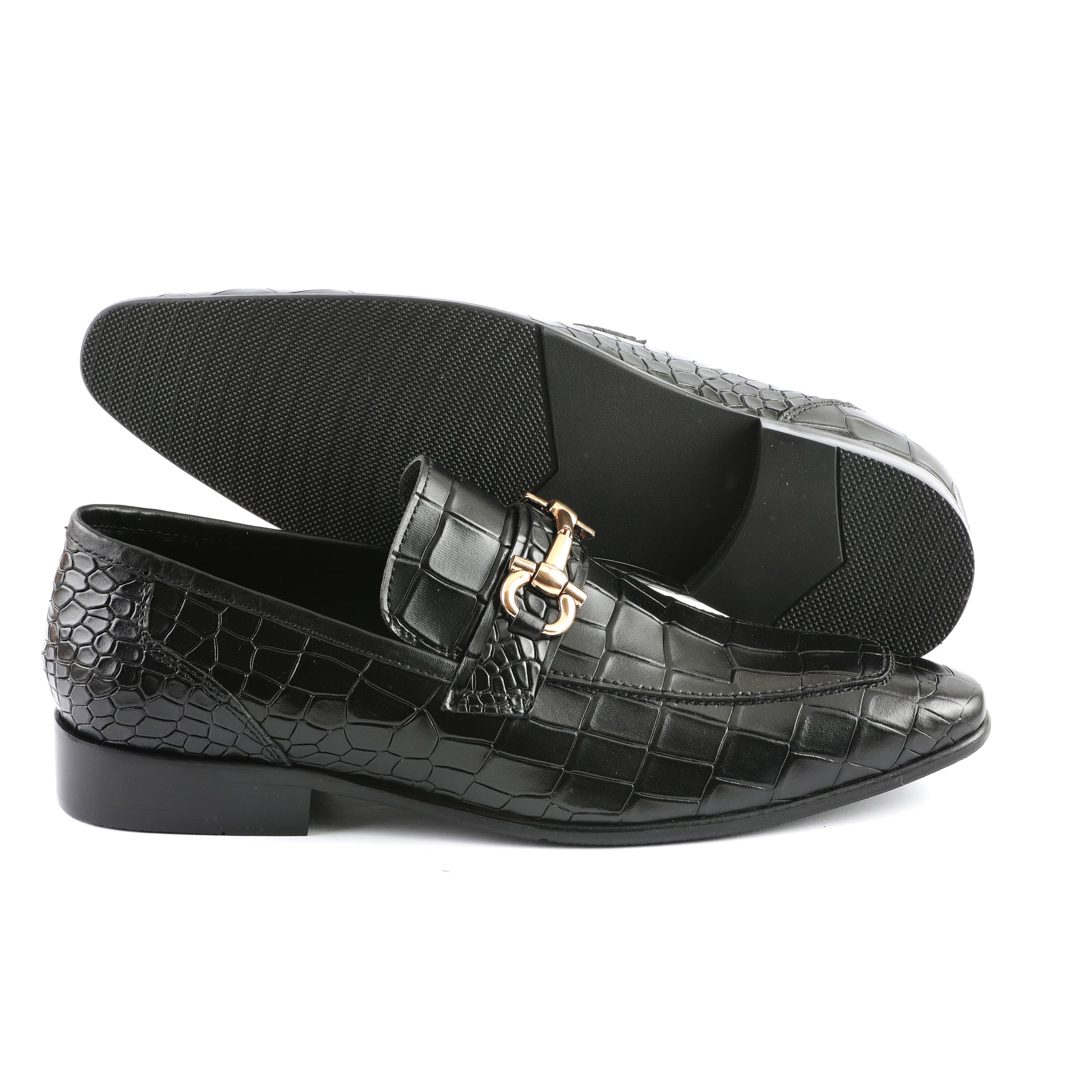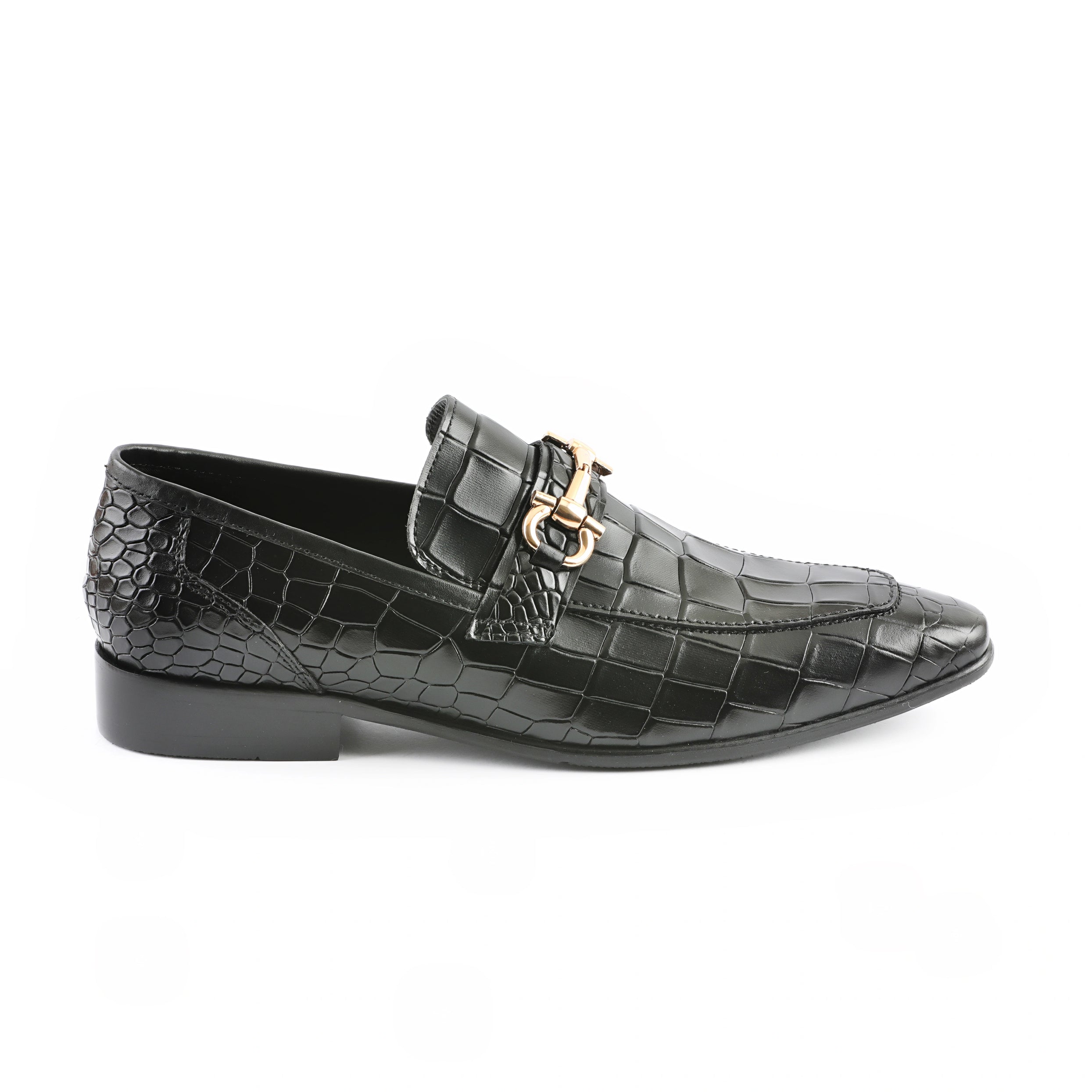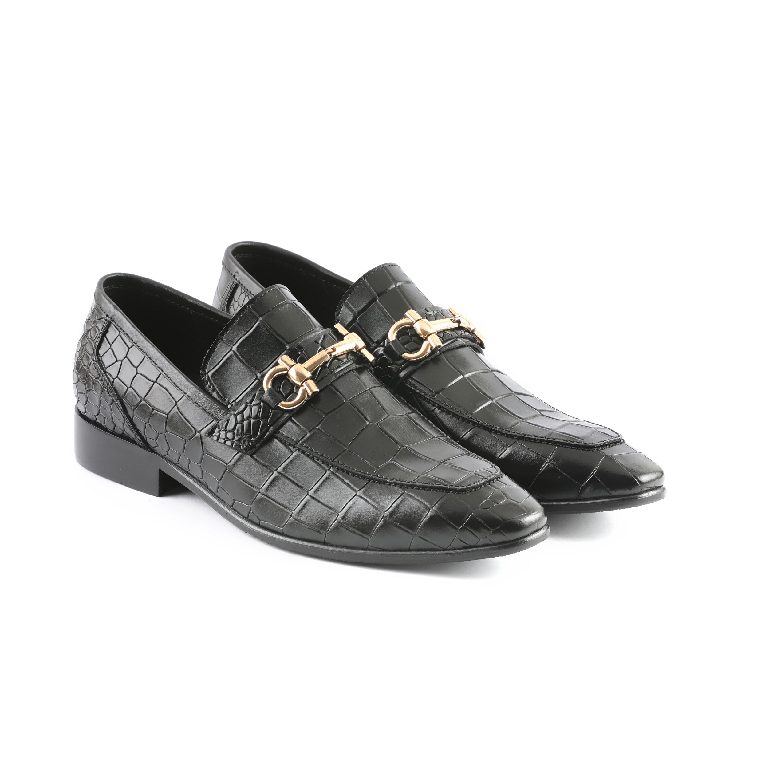 - The leather features an intricate crocodile skin pattern, adding texture and visual interest.
