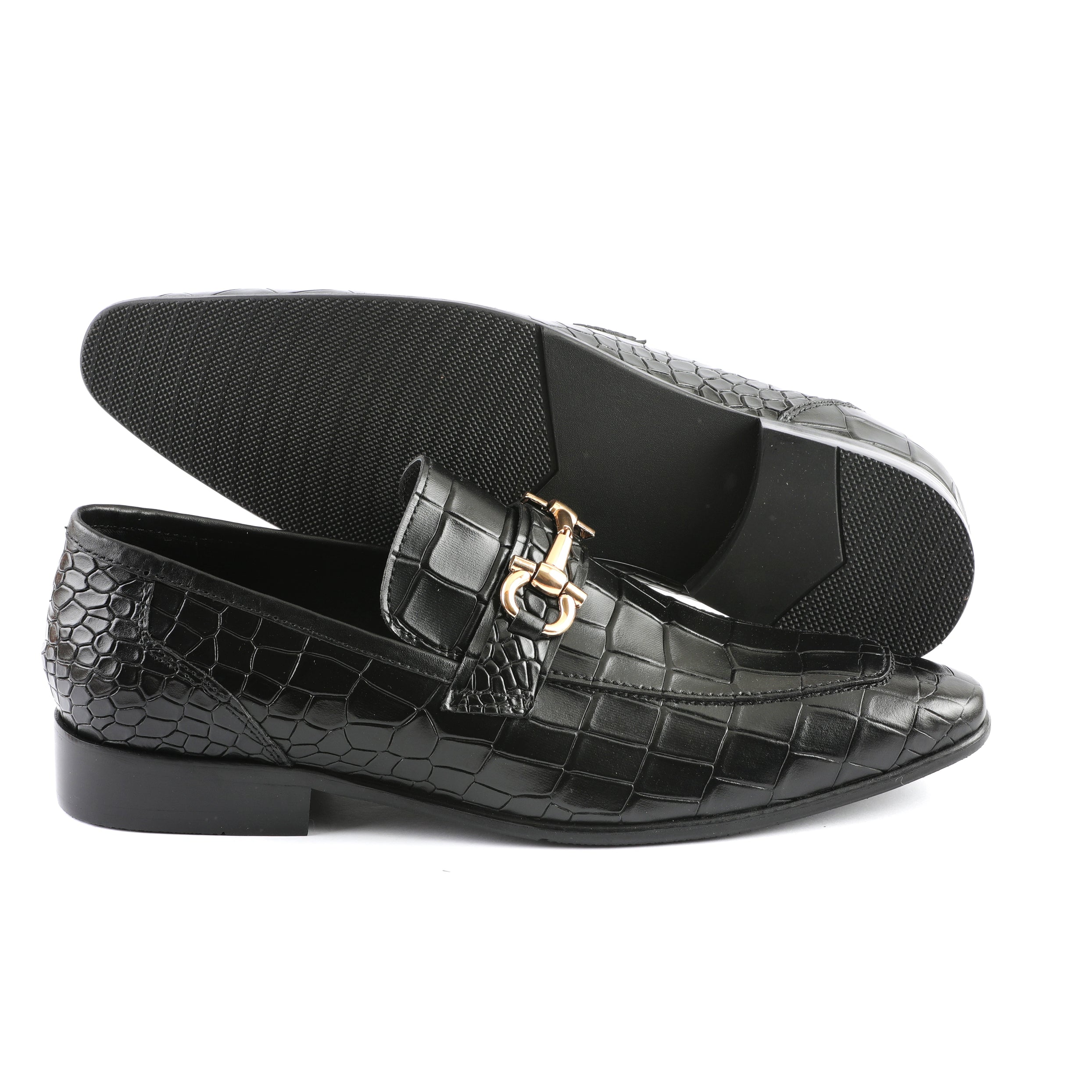 - Crafted from luxurious black leather, these shoes exude sophistication.