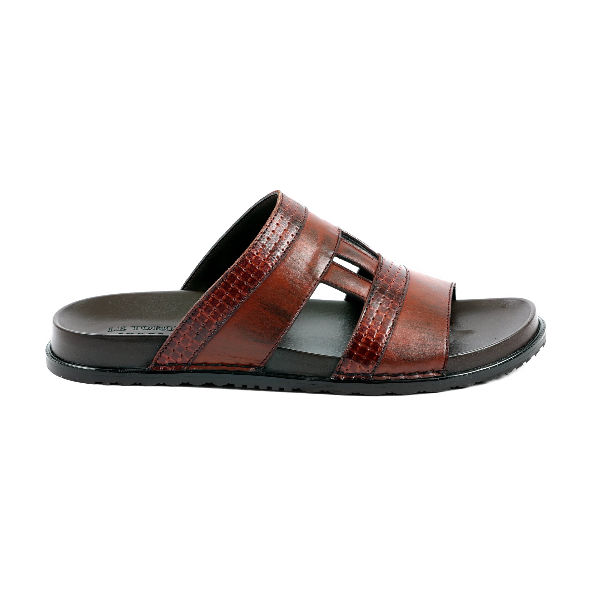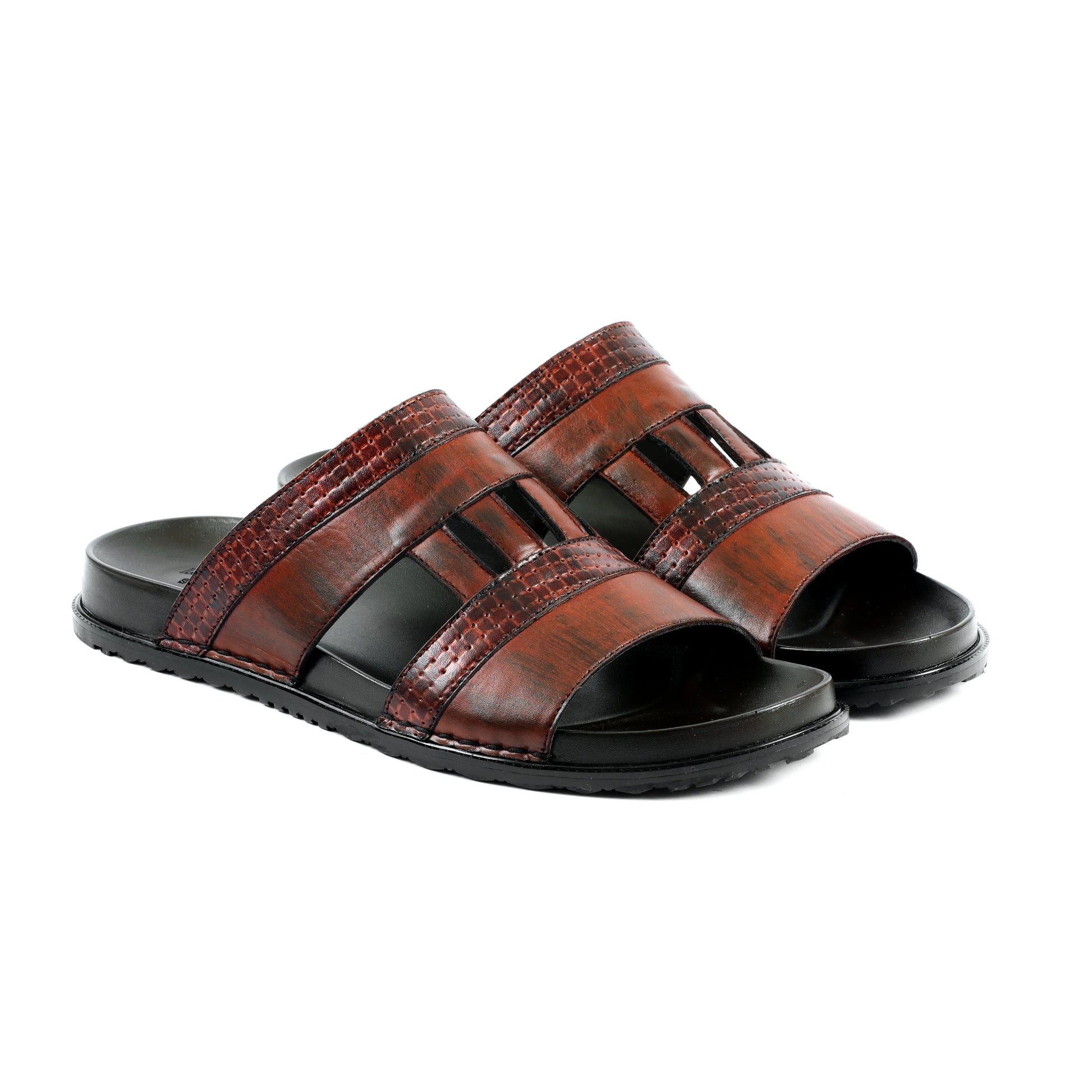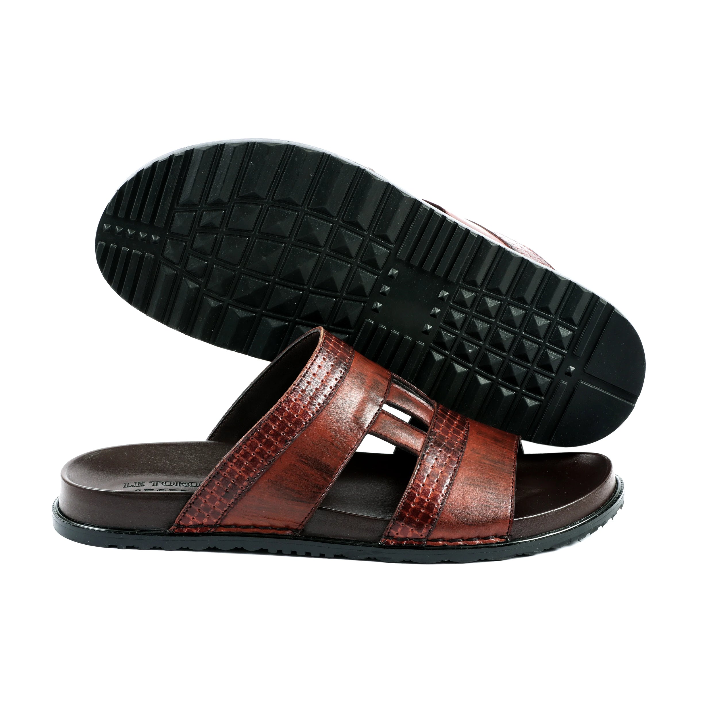 They are suitable for use both indoors and outdoors due to the superior grip and durability of the rubber sole.. Whether you’re lounging at home or stepping out for a casual errand, these slippers provide comfort and a touch of elegance with their unique interlaced leather straps and rich, brown color.