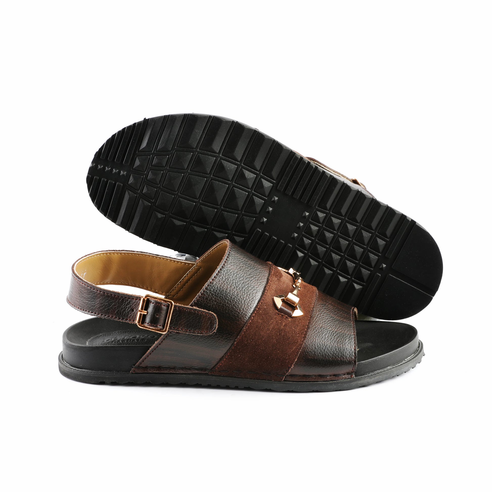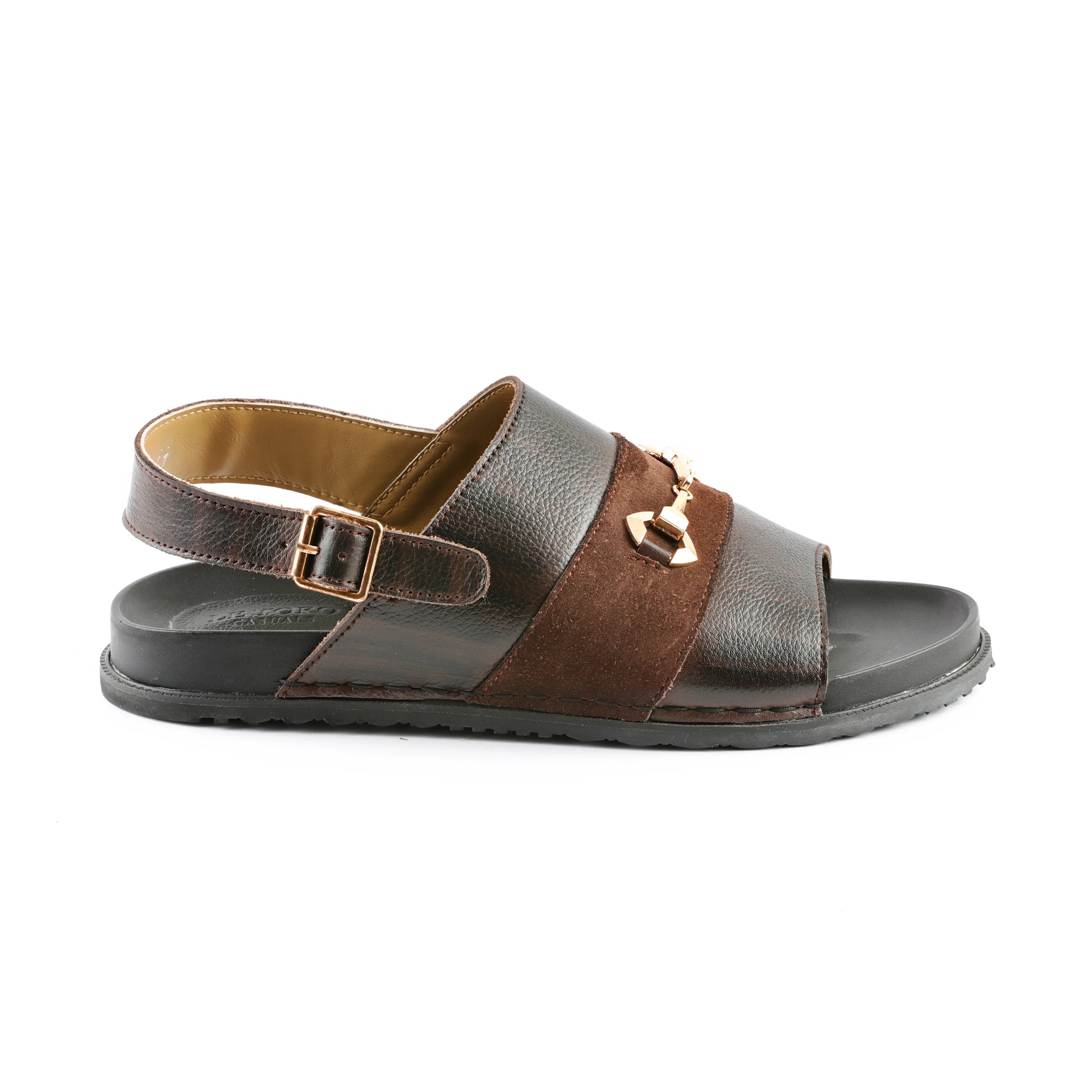 - The featured shoes are a pair of brown sandals with a modern yet classic design.